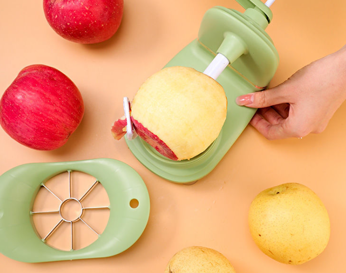 Peel quickly: peels apple, pear and potatoes in a few seconds.And with the cutter, when finished peeling, you can cut it perfectly.