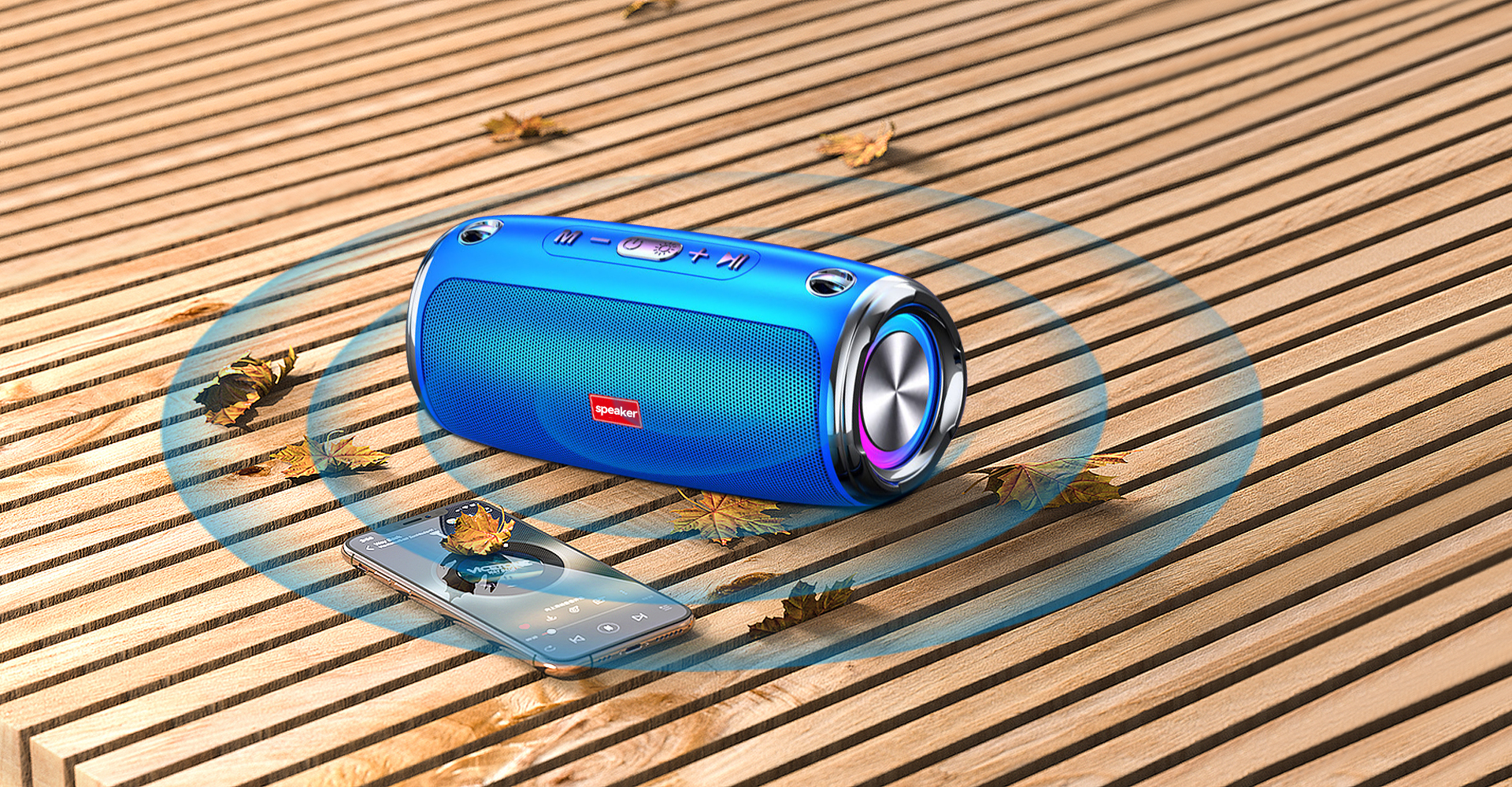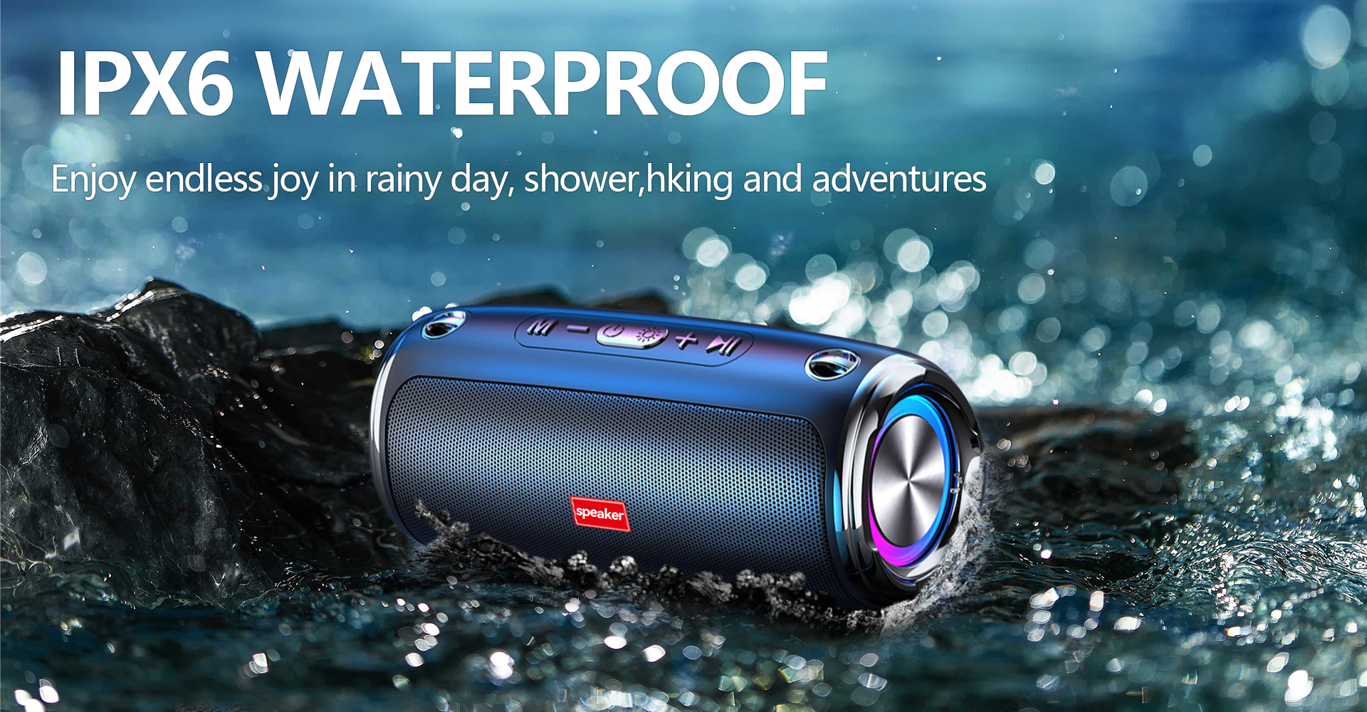 IPX6 vanntett Bluetooth V5.3/TD-kort/AUX Trippel lydbryter