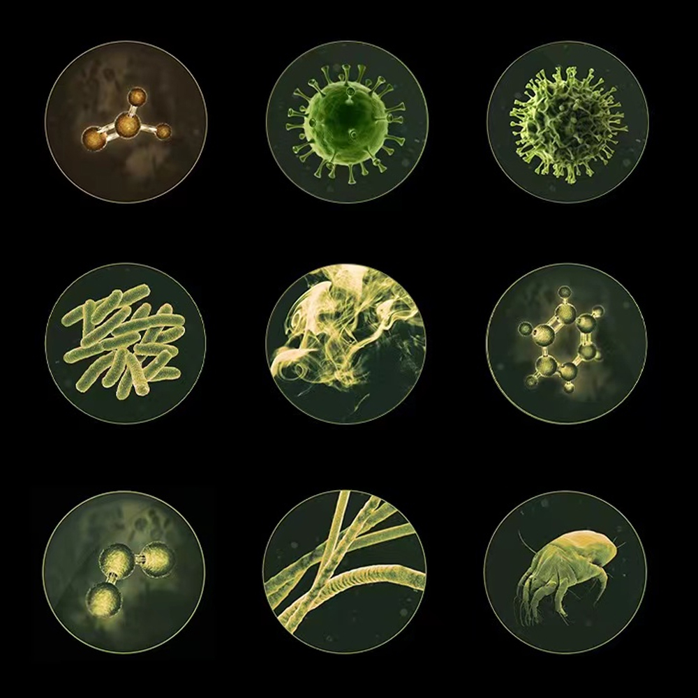 Positive og negative ioner er festet til overflaten av mugg eller virus, og kombinasjonen av positive og negative ioner genererer høy elektrisk energi for å ødelegge bakteriemembraner og virusproteiner, og reagere med vannmolekyler i luften for å generere OH-frie radikaler for å inaktivere bakterier.