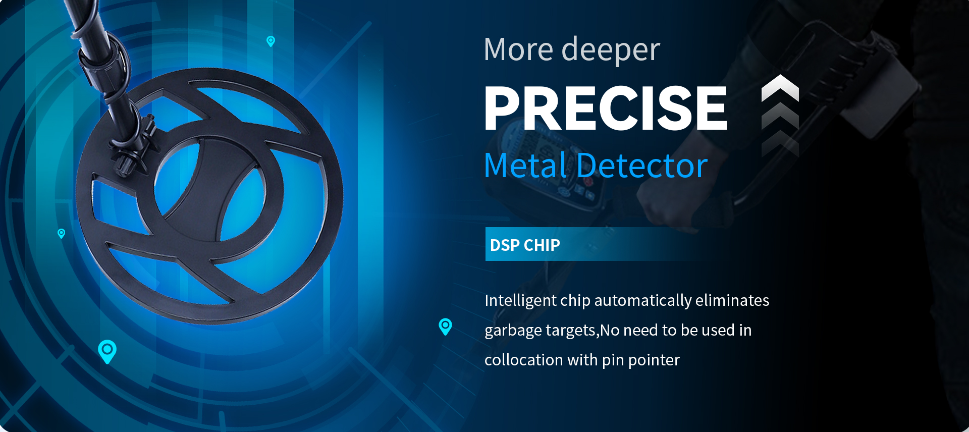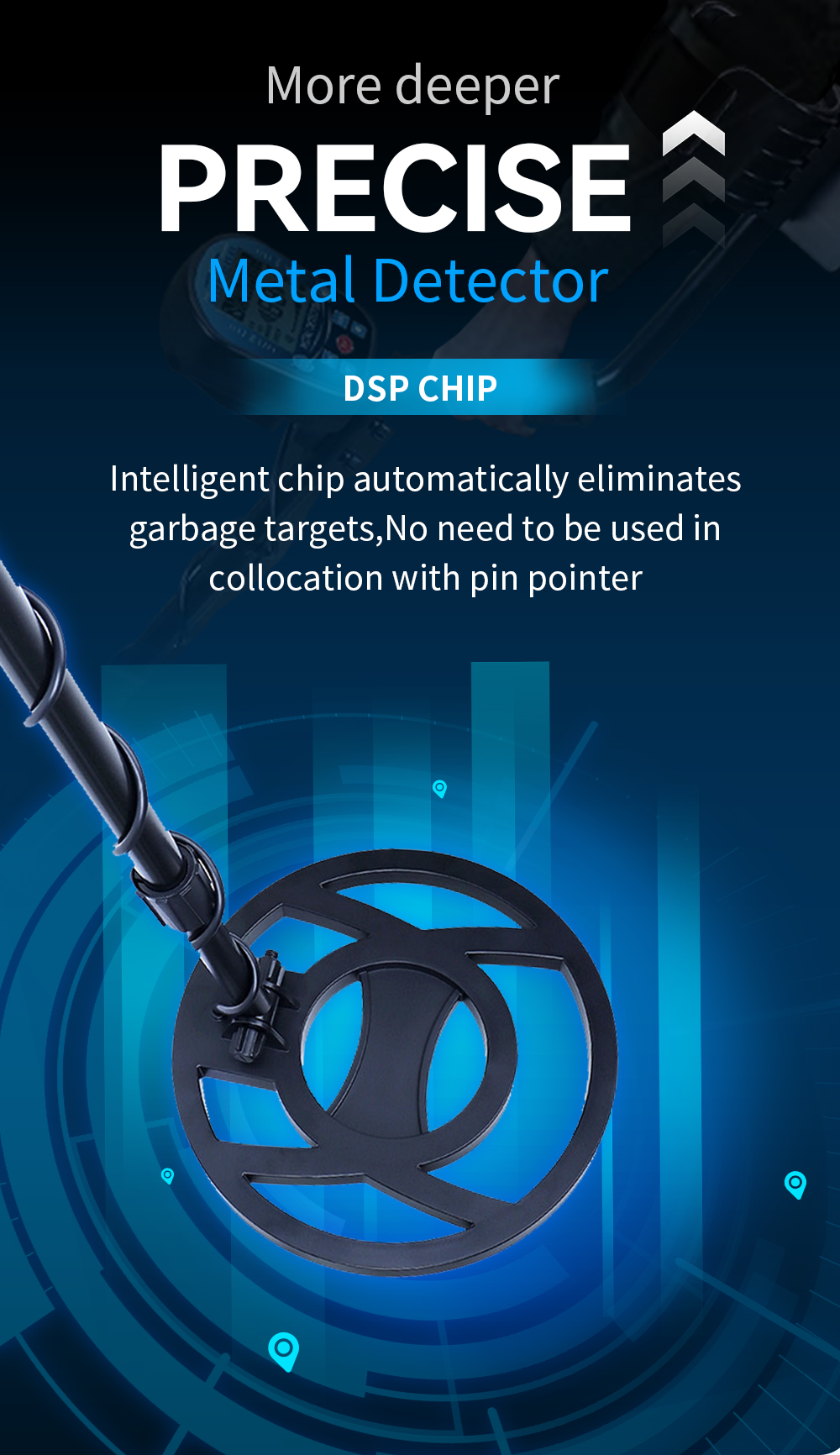 Utstyrt med en avansert brikke, behandler denne gulldetektoren deteksjoner omfattende, og hjelper deg med å raskt og nøyaktig lokalisere målet ditt. Vår gulldetektor kan skanne opptil 10 tommer dypt i bakken.